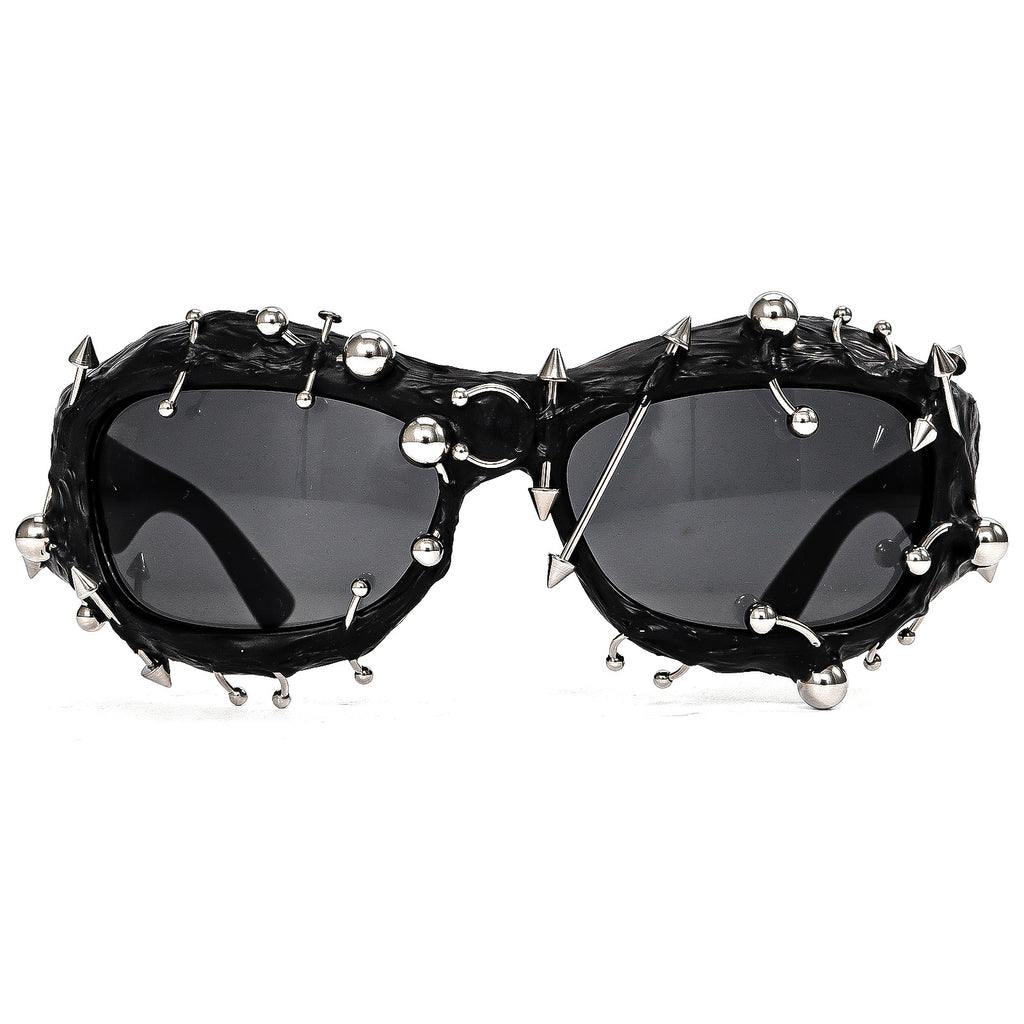 Black Edgy Punk Rock Spiked Sunglasses - Statement Goth Studded Eyewear
