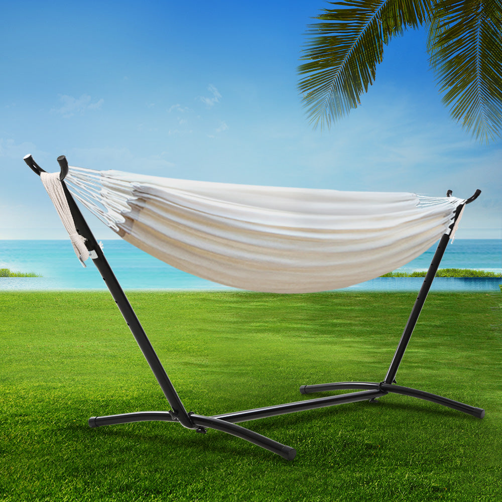 Gardeon Camping Hammock With Stand Cotton Rope Lounge Hammocks Outdoor Swing Bed