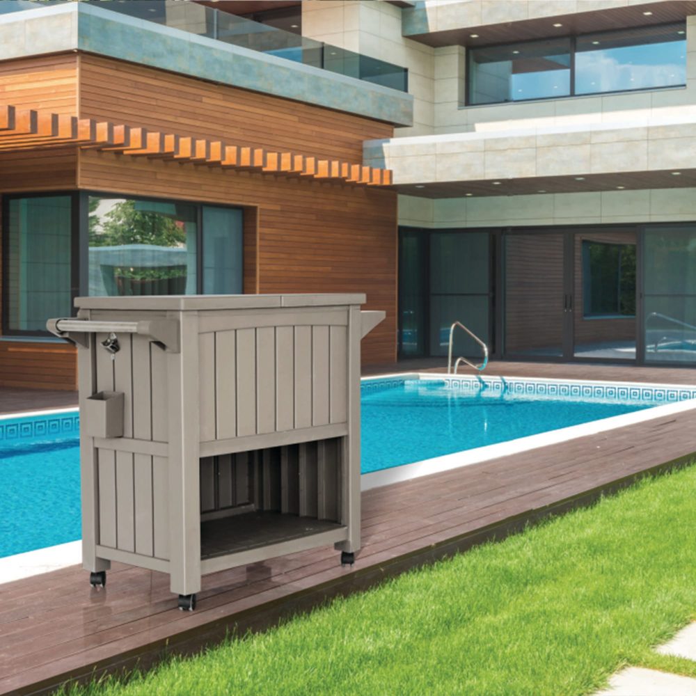 1 X Outdoor Bar Serving Cart with Cooler Taupe