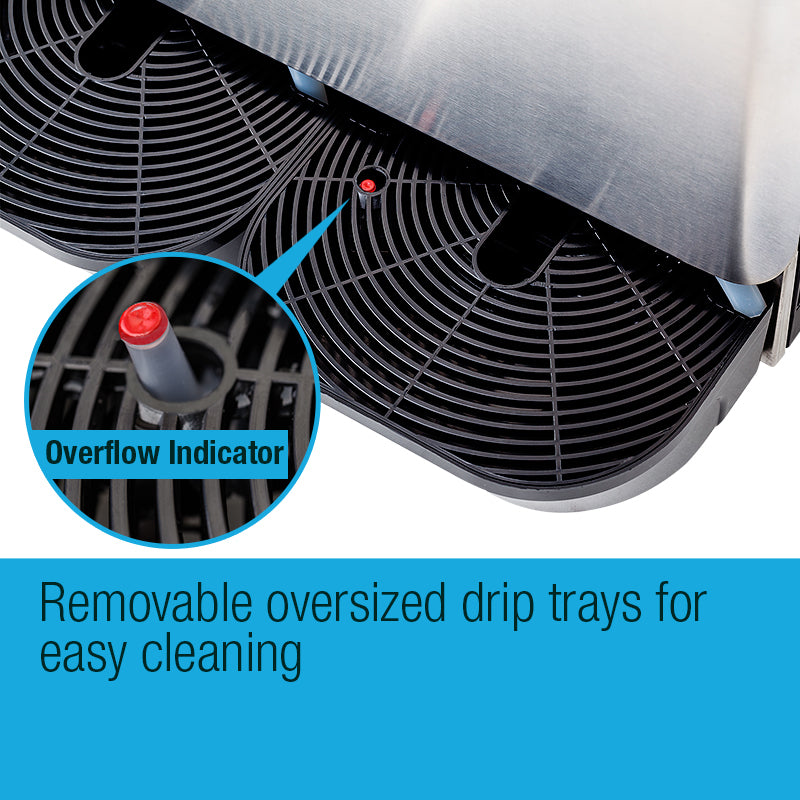 Churn out slurpees, juices, frozen cocktails, iced coffee, frappes and watch your profits soar. The stylish stainless steel design will integrate nicely with any shop interior, and the back-lit displays will whet the appetites of your customers.