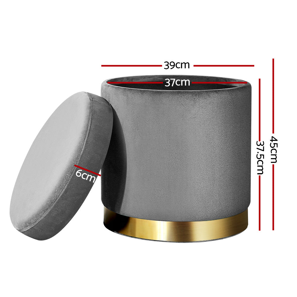 Artiss Ottoman Foot Stool with Storage Round Velvet Foot Rest Pouffe Footstool