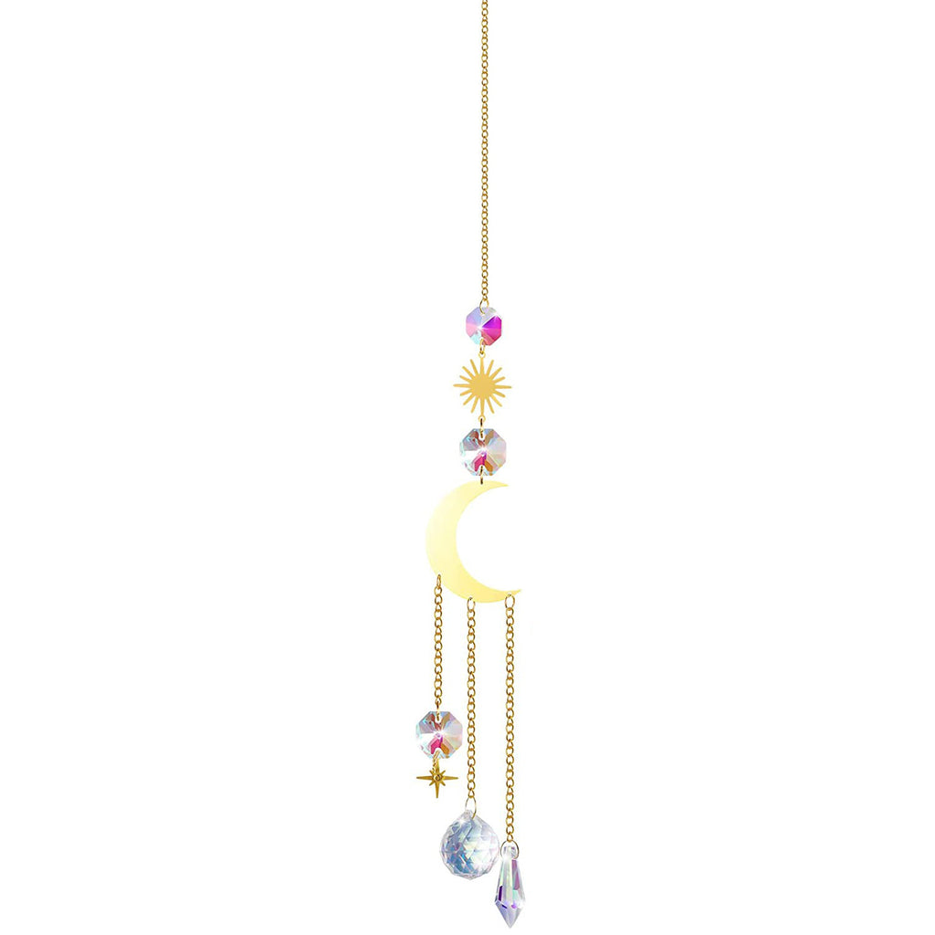 Bring a touch of magic and sparkle to your home with these stunning crystal wind chimes. Featuring celestial designs like the sun, moon, and stars, each piece is crafted with high-quality K9 crystals and elegant golden metal accents. These suncatchers create beautiful light reflections, filling your space with rainbows and positive energy.
